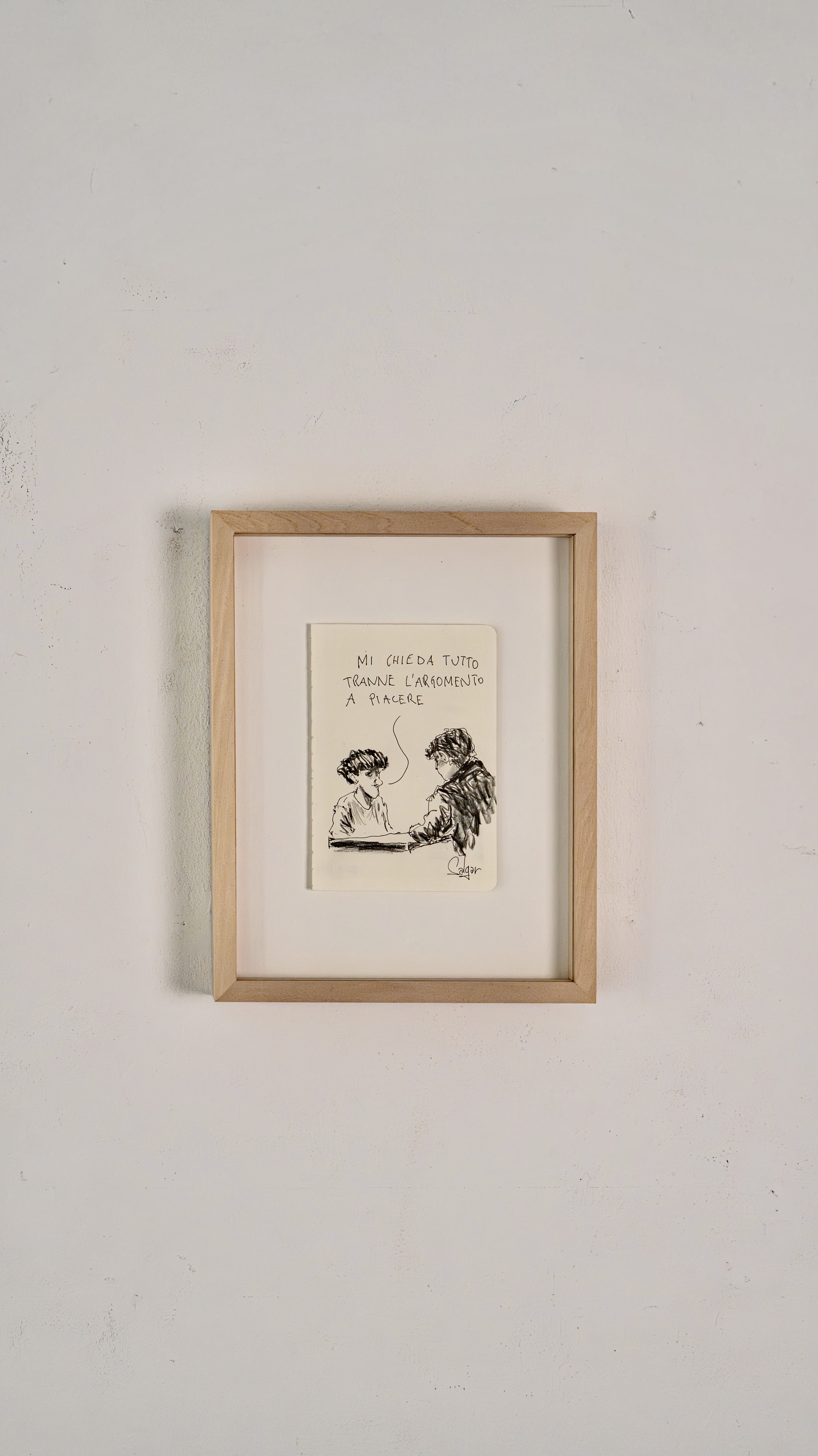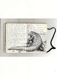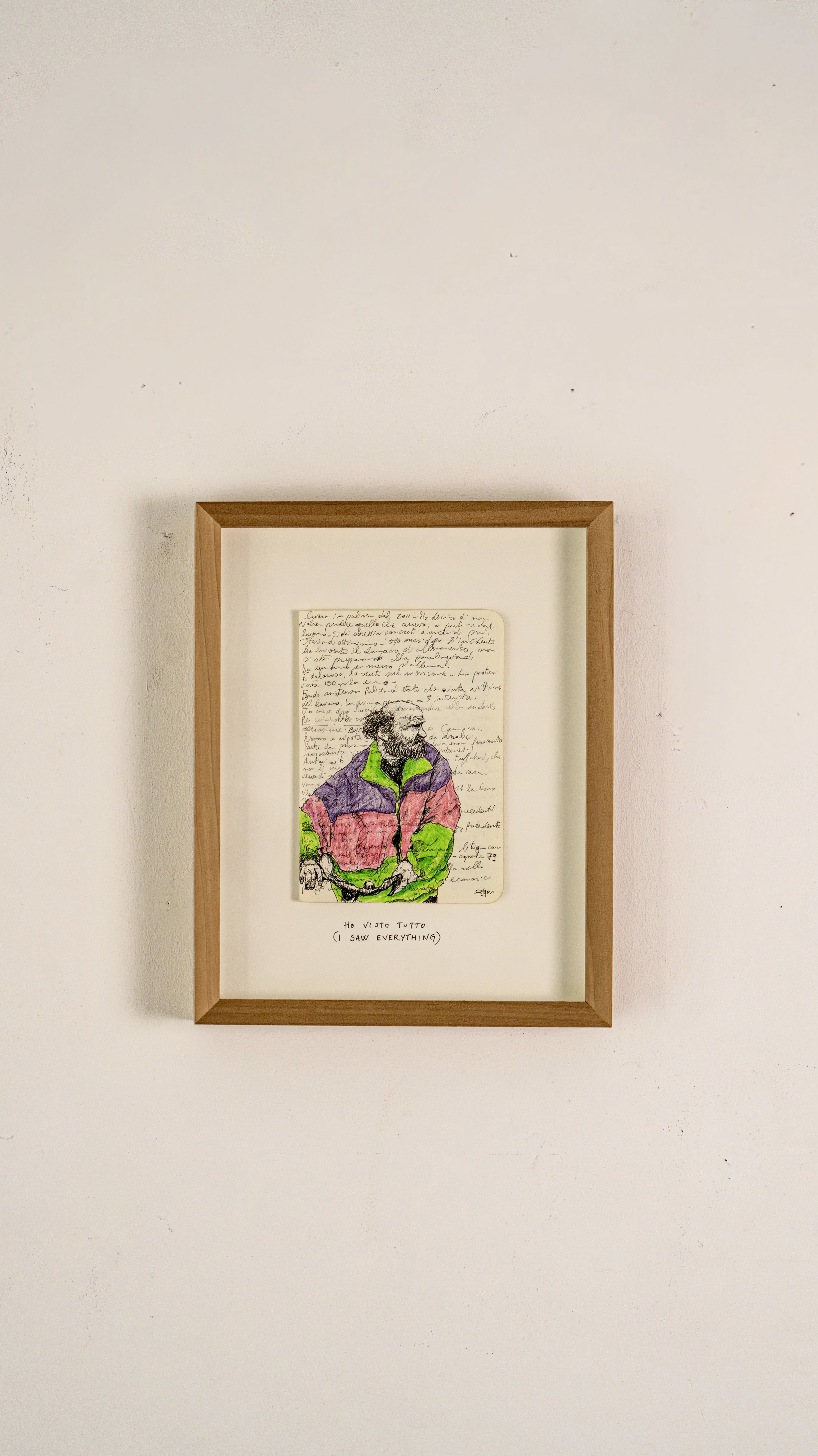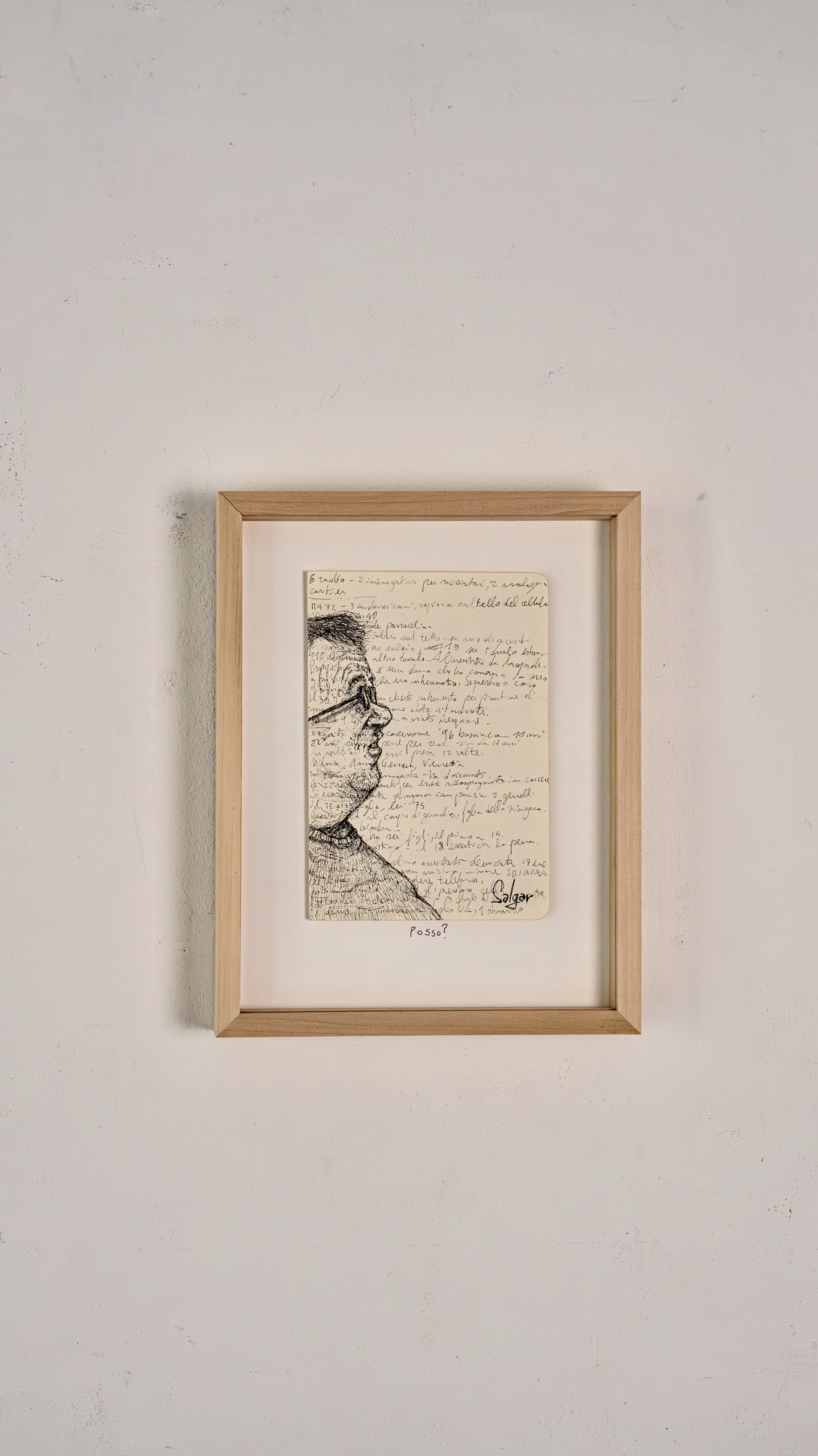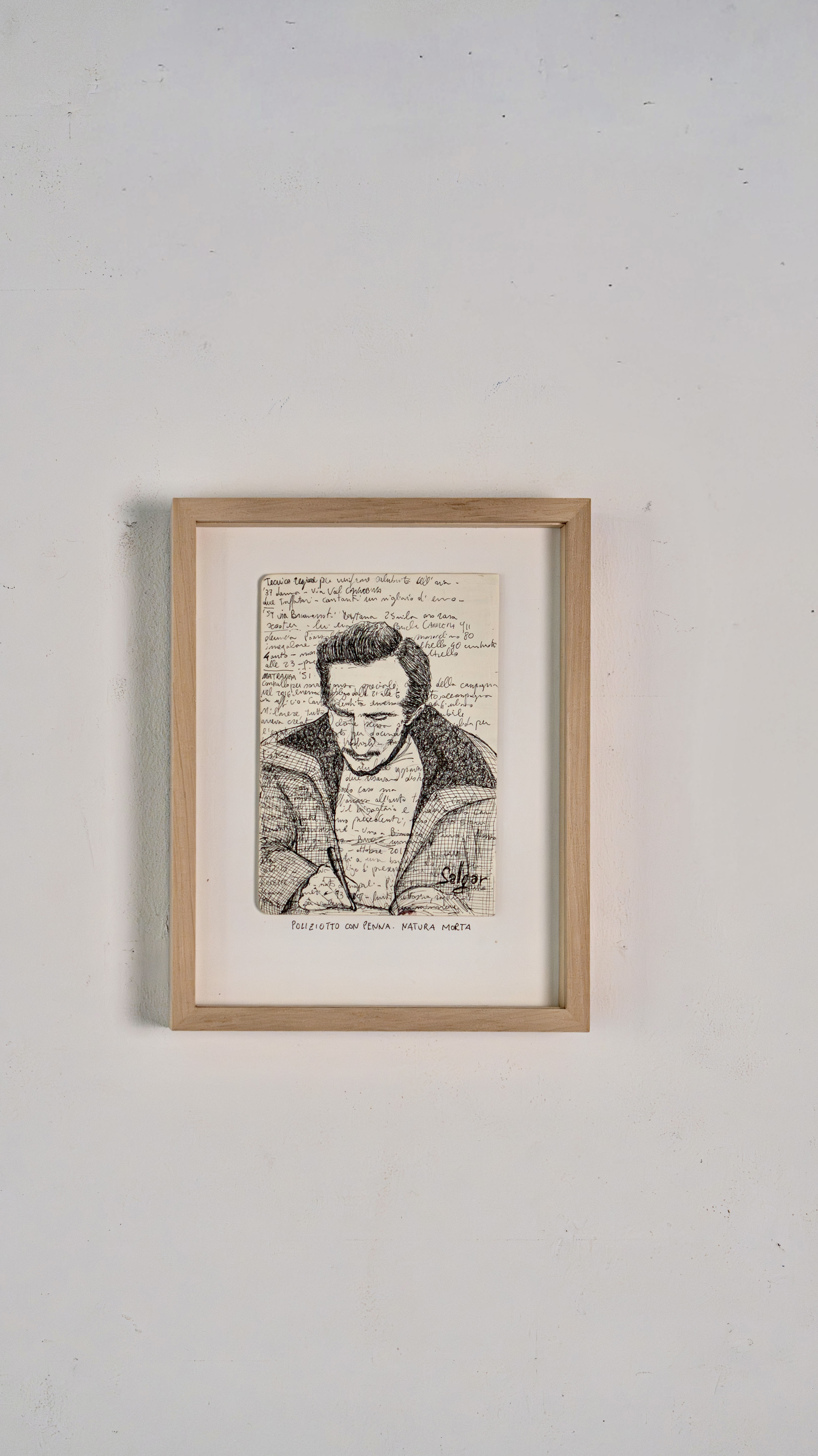 He always carries two pens and draws on anything, even receipts. His best sketches are in the notebook he takes to police stations, crime scenes, and courtrooms, on top of dense pages of notes about the cases he follows daily. The essence of his graphic journalism work is captured in “Il giro di nera”, a column in which he documents and illustrates firsthand crime stories, later adapted into a live performance in the innovative format of “stand-up tragedy.”