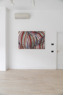 Simone Miccichè’s paintings speak to the long tradition of drapery in art by reinterpreting it through a contemporary lens. His project “Corpo Tessuto” explores, through painting, the absence and origin of a migrant body, constantly displaced due to geopolitical circumstances. It is a rediscovered body that, in contemporary narratives, is often represented by the media as covered, hidden, or wrapped in anonymous, sterile cloths. The fabric thus becomes a sensitive archive: a surface capable of retaining memories, gestures, and collective identities, as well as the frictions and asymmetries of power that span the history of bodies and territories.